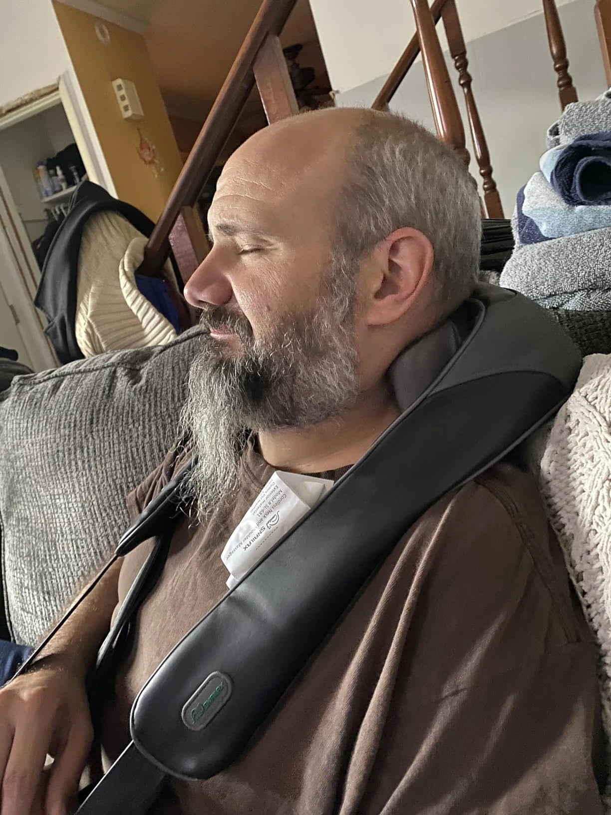 Simula dedos humanos. Amasa los músculos del trapecio para un alivio profundo, no solo vibra.