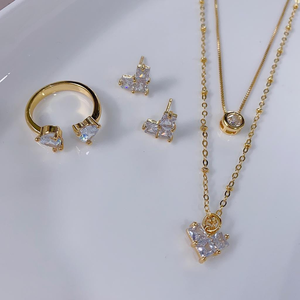 ✨ Combo Cadena Doble + Anillo + Aretes – Cover Gold
