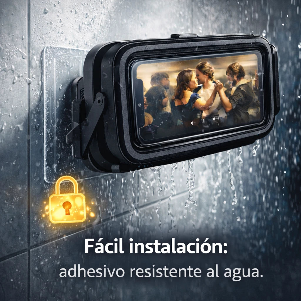 Tu celular queda protegido y visible mientras te bañas. Puedes ver videos, responder mensajes o poner música sin miedo a salpicaduras, vapor o accidentes. Se instala rápido, queda firme y no estorba.